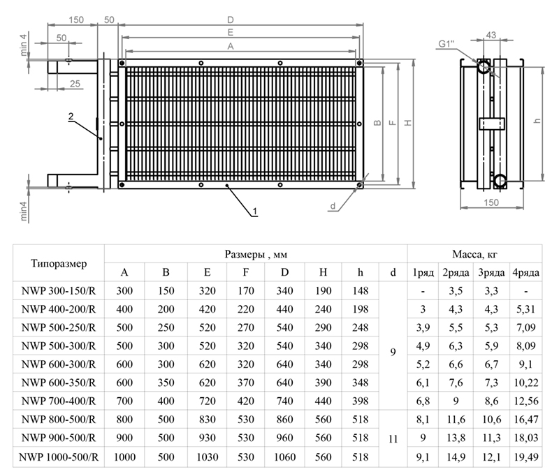 - Все типоразмеры NWP имеют одинаковые присоединительные размеры патрубков к теплоносителю