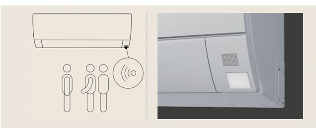 • Eco Sensor — датчик присутствия, распознает присутствие человека в помещении и интенсивность его передвижения. На основе анализа определяет интенсивность работы сплит-системы и необходимость перехода в энергосберегающий режим.