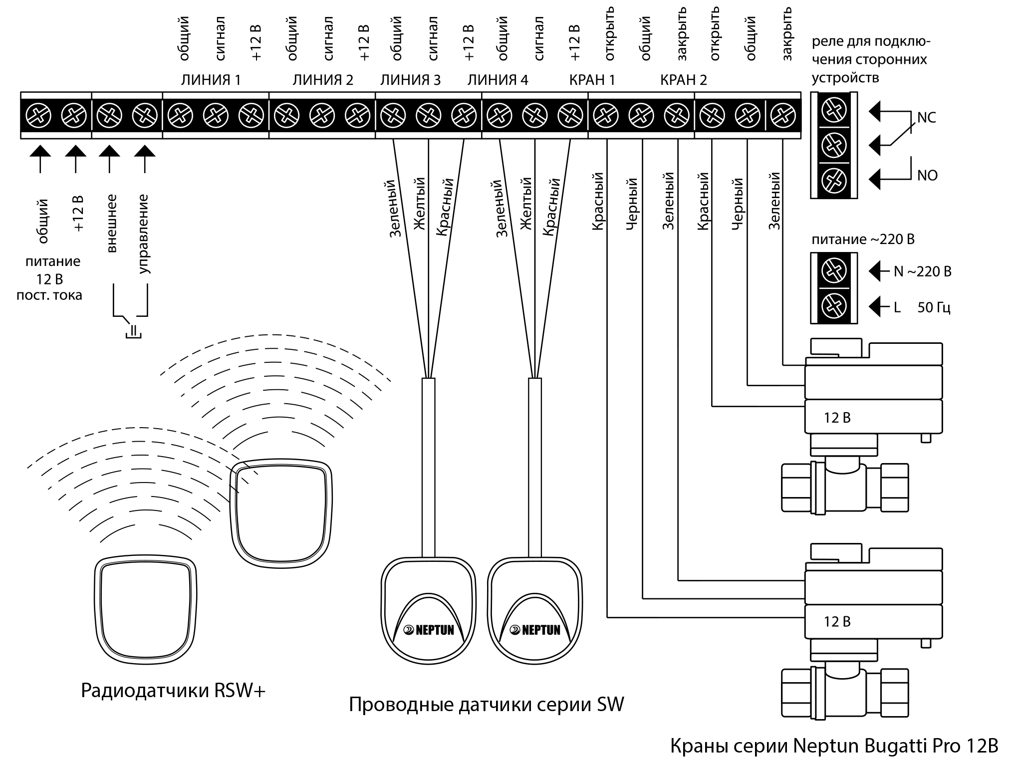 Радиореле PR, Блок подключения кранов ProW, Блок расширения проводных датчиков ProW, Счетчик учета воды