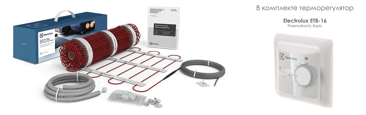 Нагревательный мат Electrolux EEFM 2-180-10 серии Easy Fix Mat с терморегулятором