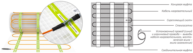 Резистивный кабель — имеет одинаковую мощность нагрева по всей длине. Регулирование мощности осуществляется с помощью термостата.