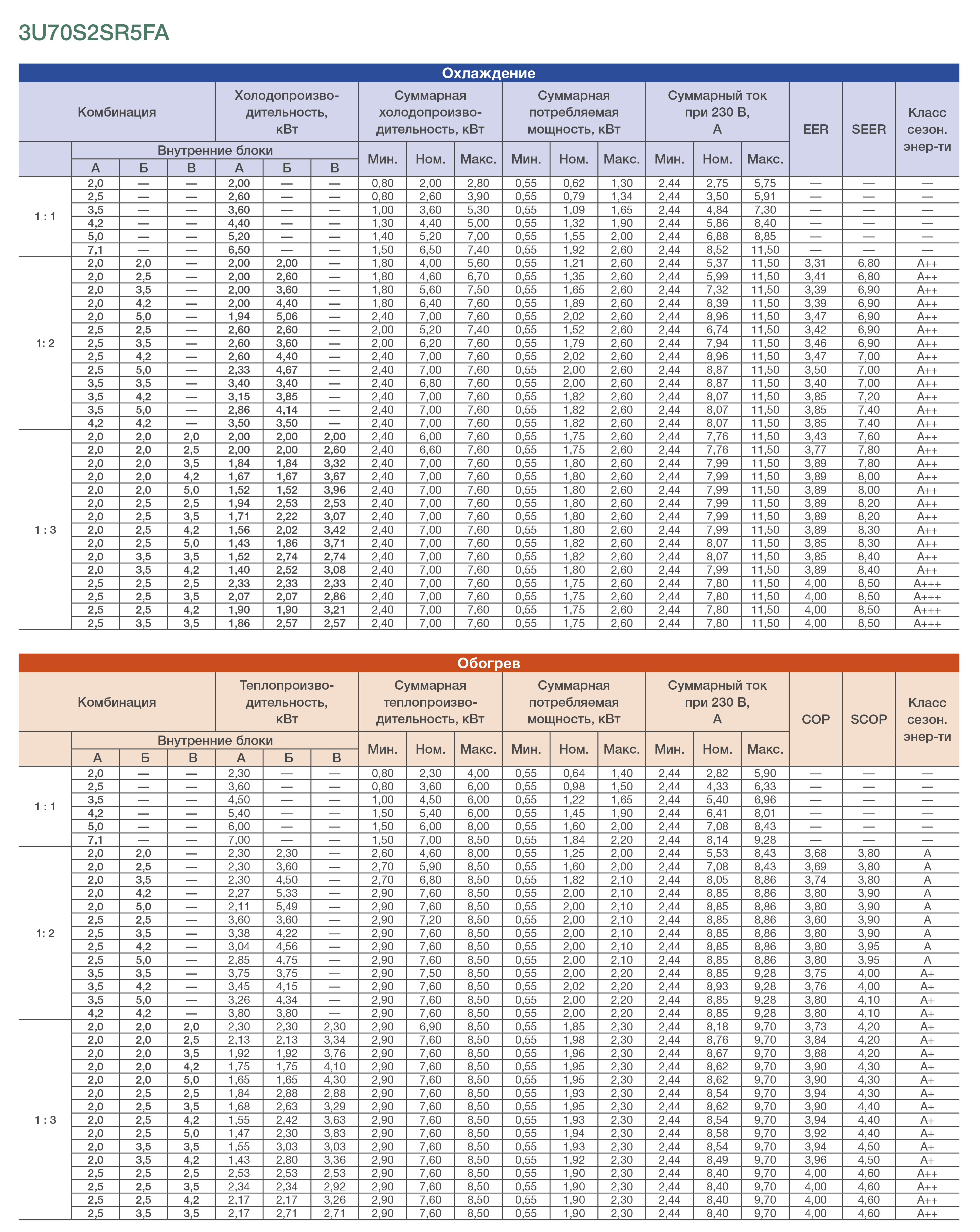 Мощность в режиме обогрева