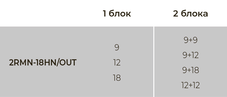 Общая площадь охлаждения до 50 кв.м, комбинации внутренних блоков подбираются индивидуально.