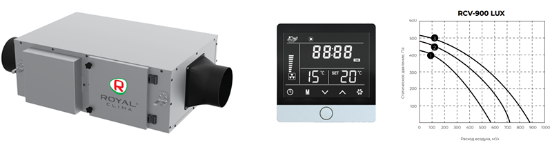 Приточная вентиляционная установка Royal Clima RCV-900 LUX + EH-2800 (1-фазный)