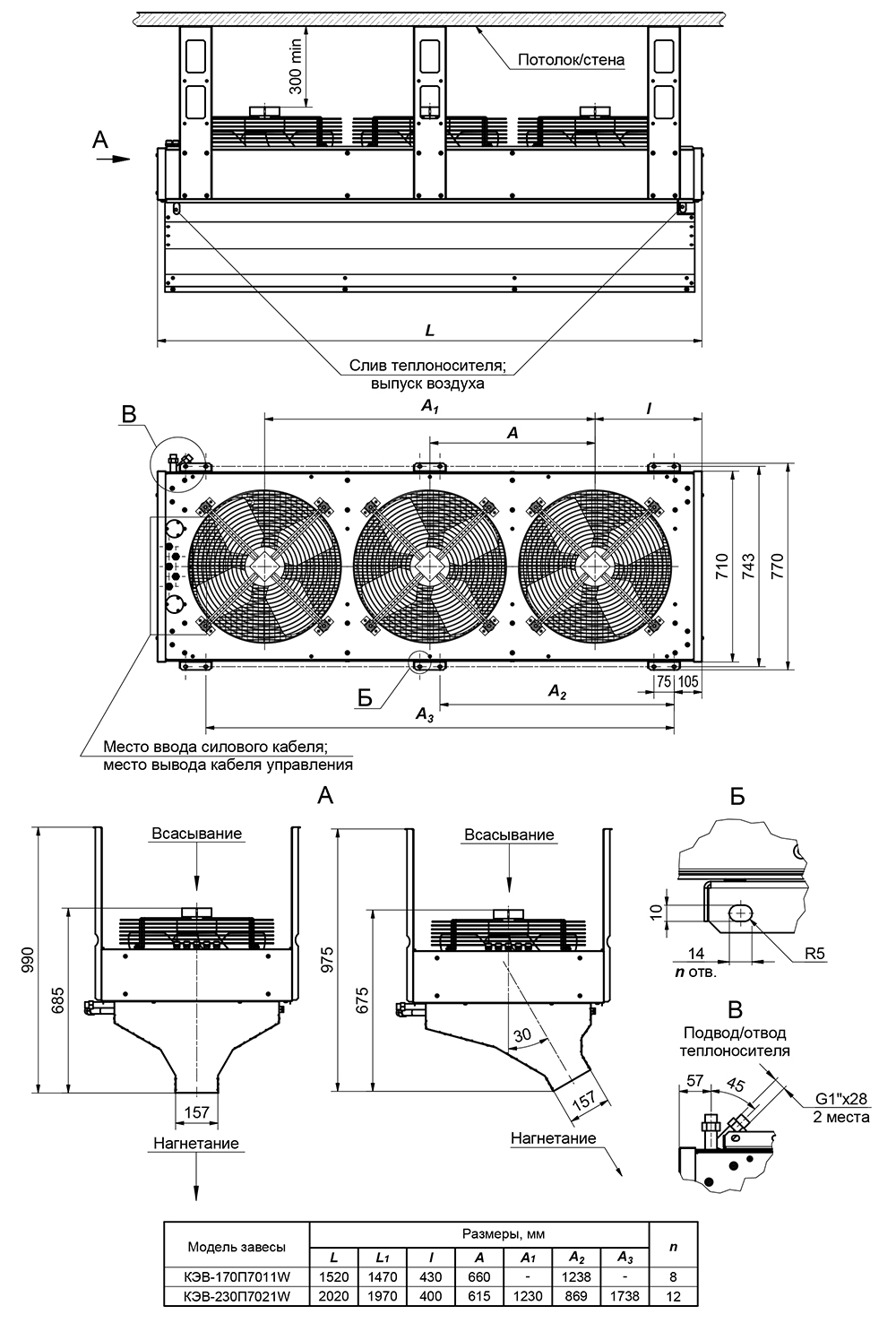 Водяная тепловая завеса Тепломаш КЭВ-230П7020W