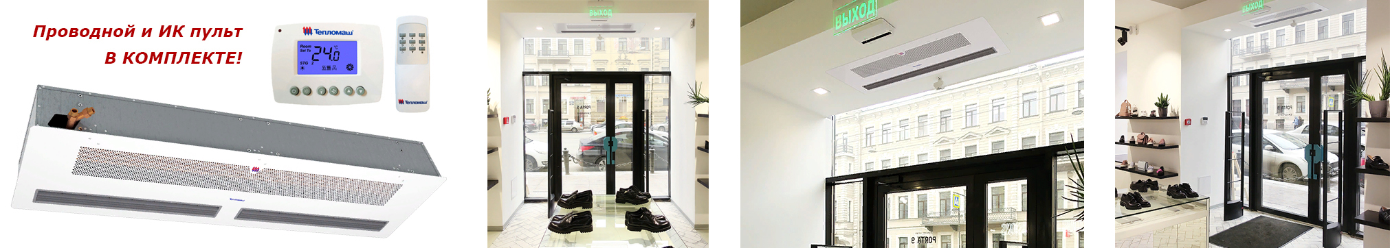 Тепловая завеса смесительного типа, предназначена для защиты помещений от прямого контакта с наружным воздухом через открытые двери в холодный период времени. Встраивается в подвесной или фальш-потолок над дверным проёмом, на высоте не более 2,5 м. Подходит для установки в кафе, торговых павильонах, салонах красоты, гостиницах, медицинских центрах и др.