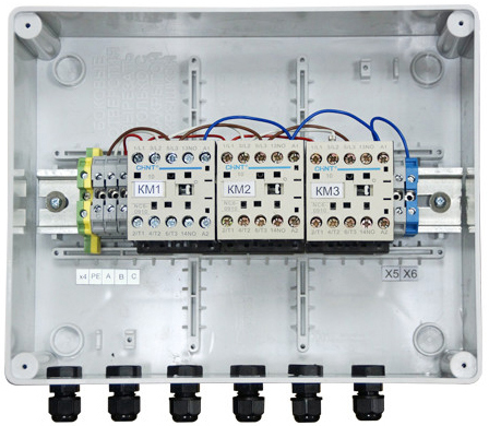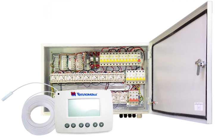Регулирование подводимой тепловой мощности в зависимости от температуры воздуха внутри помещения Защита теплообменников от низких температур Регулирование теплоотдачи завесы для поддержания заданной температуры в помещении Включает завесу при открывании ворот Модуль подключения влагозащищенных завес IP54Блок коммутации и управления завес с IP54 Пульт управления завесами