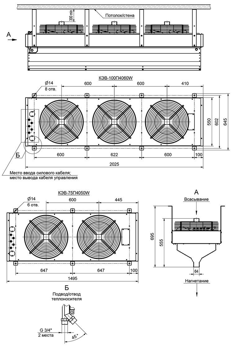 Водяная тепловая завеса Тепломаш КЭВ-75П4050W серии 400 IP54 Промышленная