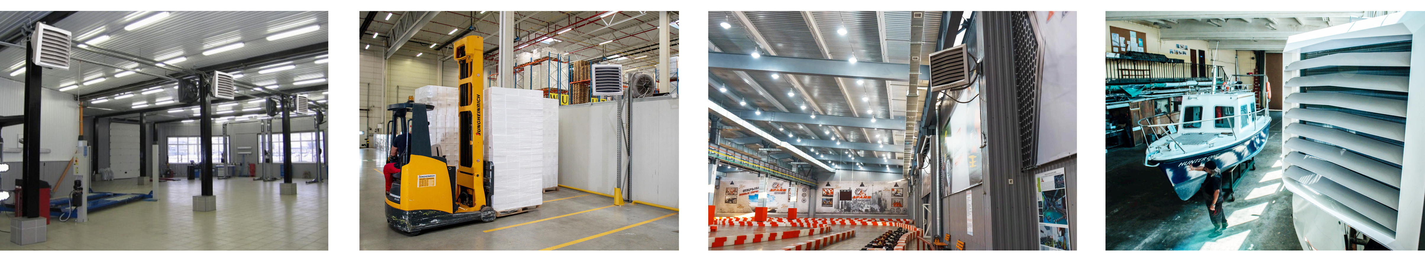 Применяется для обогрева производственных, складских, торговых помещений, спортивных сооружений, птицеводческих и животноводческих комплексов. Подключатся к источнику горячего водоснабжения или отопления. Устанавливается на стену или потолок.