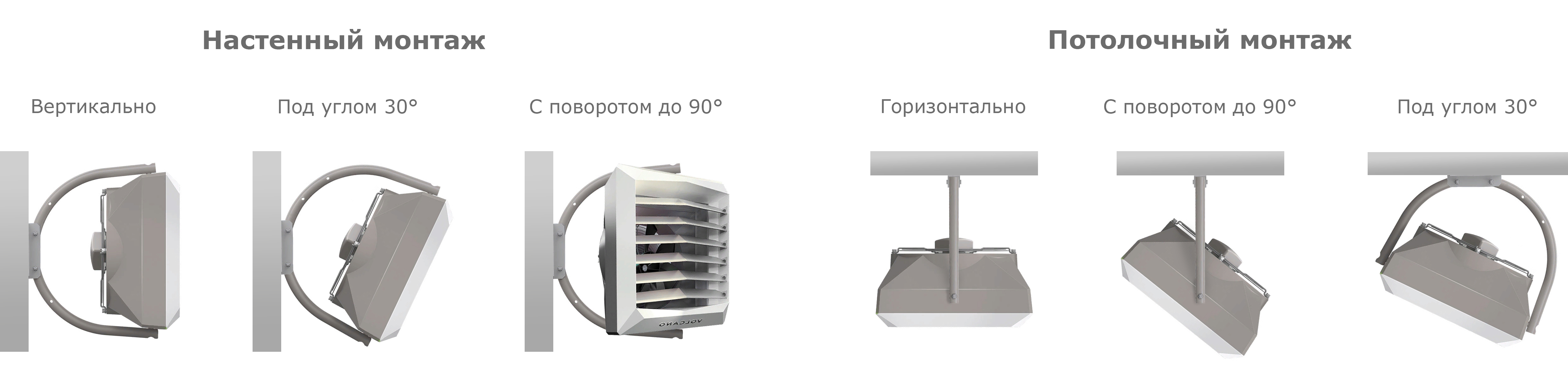 - Монтажный кронштейн имеет поворотную конструкцию, что дает возможность дополнительного регулирования направления воздушной струи.