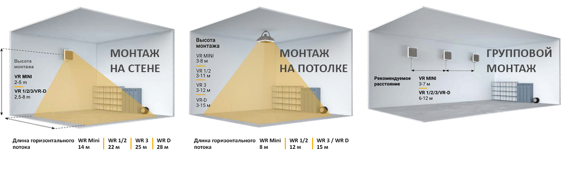 Размещение тепловентилятора: