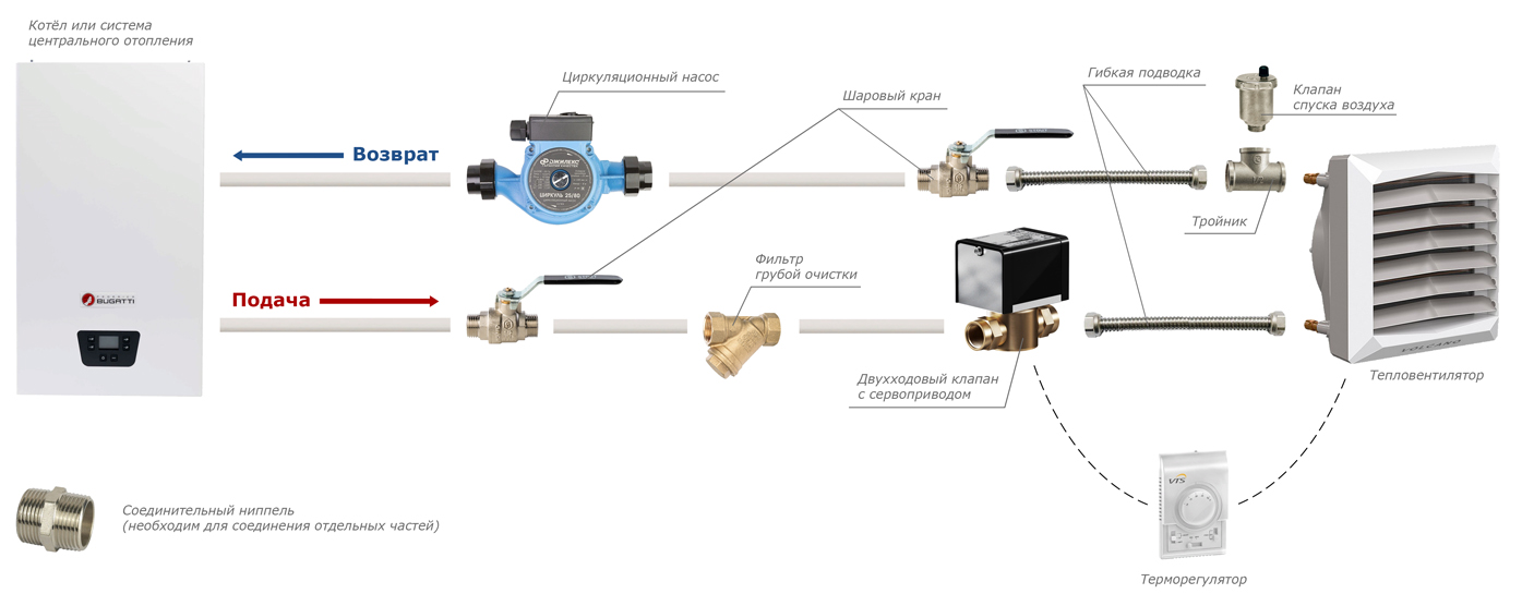 Схема подключения тепловентилятора: